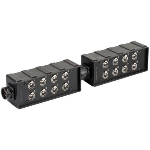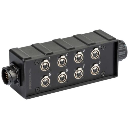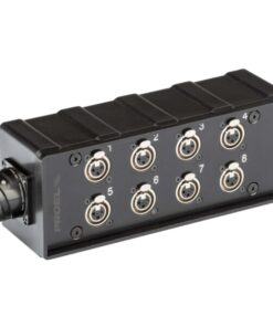 Audio box in materiale plastico antiurto cablato con 8 prese pannello XLR 3P e connettore multipolare di collegamento 25 Poli (CMIL25MP) + connettore link 25 Poli (CMIL25FP).