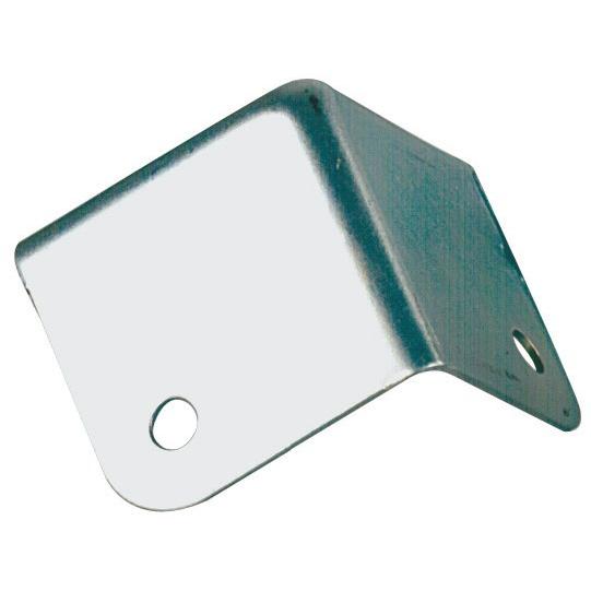 Triple-sided, squared, galvanized steel case corners, with a single mount on all three sides. Stamped with internal angle radius of 2.5mm (0.1 in) ø 5.2mm (0.2 in) dia. mounting holes.