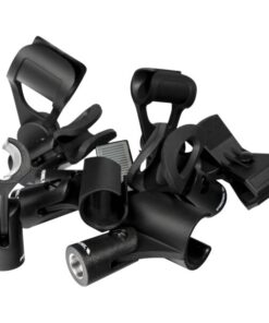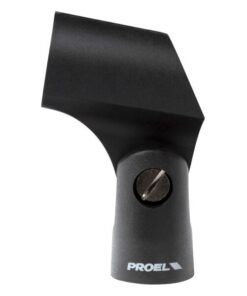 Supporto in ABS per microfono (Ø min – max: 22 – 26 mm). Doppia filettatura per aggancio su asta microfonica: 3/8″ e 5/8″.