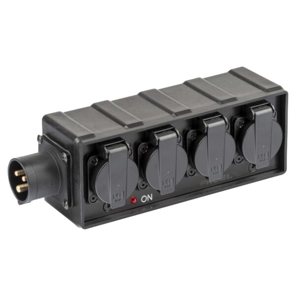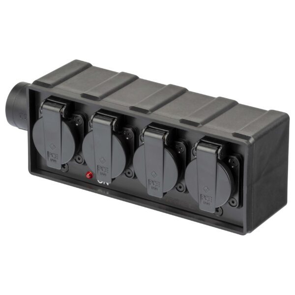 - Uscita: n.4 x presa Schuko bivalente – 16A German / 10A IT – 2P+T – IP54 – 230V