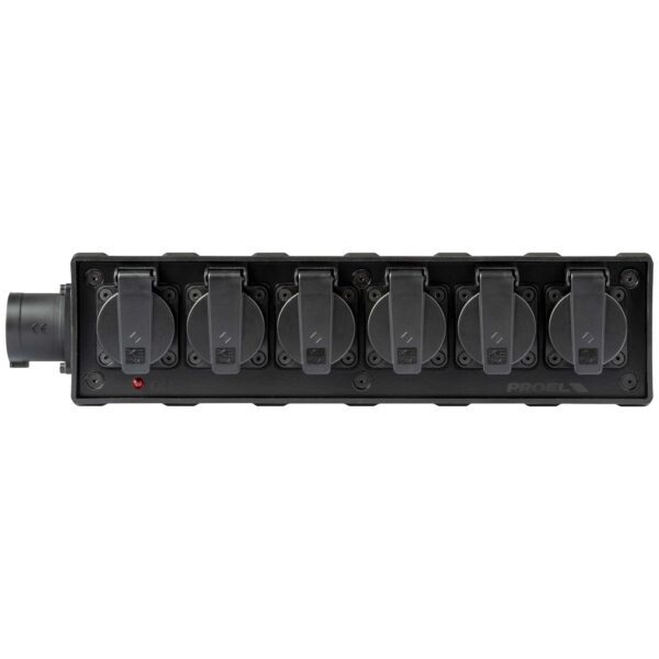 - Uscita: n.6 x presa Schuko bivalente – 16A German / 10A IT – 2P+E – IP54 – 230V