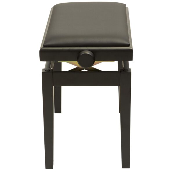 Panca professionale regolabile in legno per piano ed organo. Telaio Nero opaco. Cuscino imbottito con rivestimento in similpelle nera.