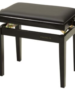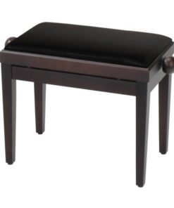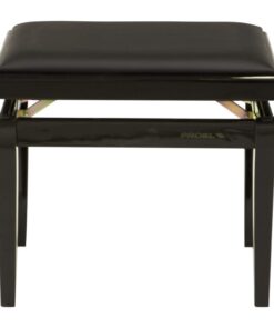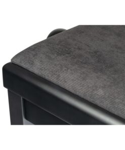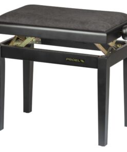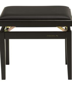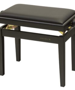 Panca professionale regolabile in legno per piano ed organo. Telaio Nero opaco. Cuscino imbottito con rivestimento in velluto nero.