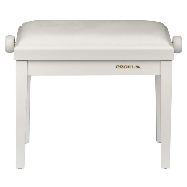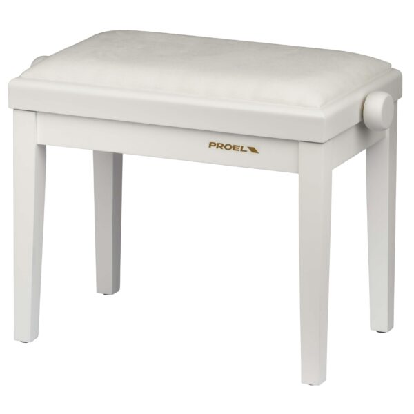 PANCHE REGOLABILI SERIE PB90 – Panca professionale regolabile in legno per piano ed organo, seduta imbottita con rivestimento in velluto, meccanica in acciaio con finitura tropicalizzata, comode manopole per la regolazione dell’altezza. Telaio Bianco Opaco. Cuscino con rivestimento in velluto bianco.