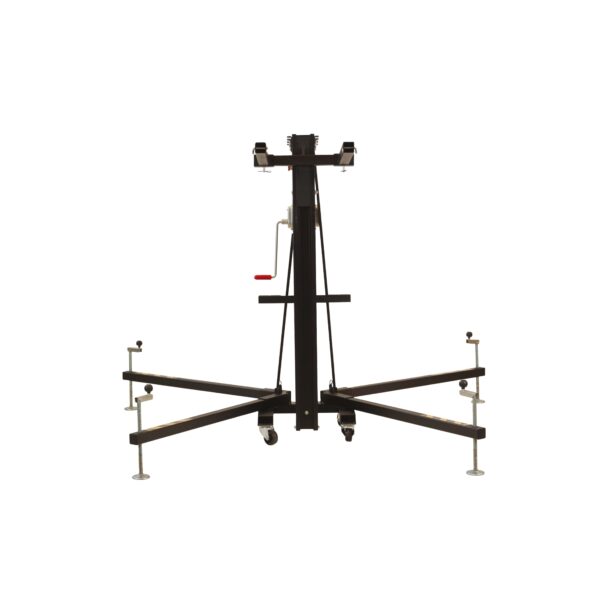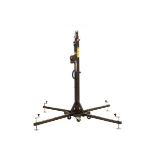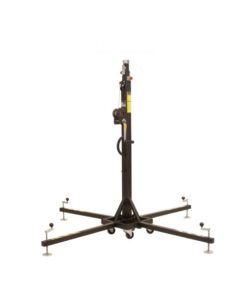Robusto elevatore frontale a torre, potente e versatile da usare, realizzato in alluminio e acciaio; particolarmente adatto al sollevamento di sistemi line-array, strutture truss molto pesanti e schermi a LED.