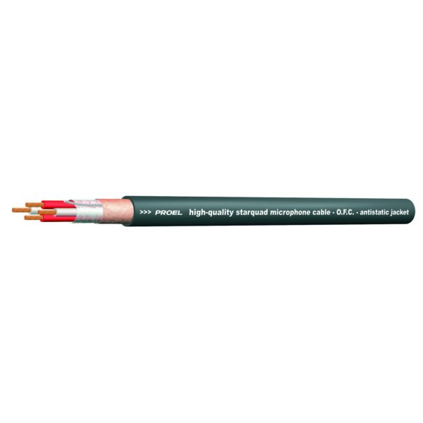 Cavo per microfono “high-quality” STARQUAD a 4 conduttori twistati con guaina esterna antiabrasione antistatica – O.F.C. (Oxygen Free Copper).Colore nero.