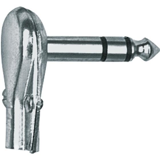 Jack stereo Ø 6.3 mm.-1/4′ angolare a 90°, manicotto nichelato.