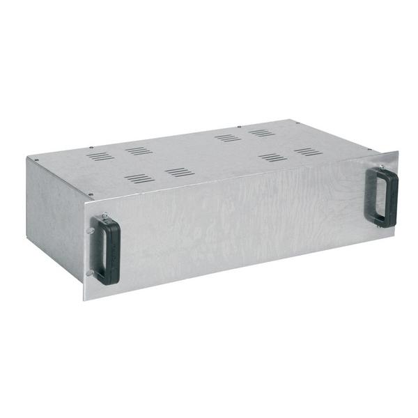 Scatola rack 19′ con pannello frontale 3 mm. cieco. Disponibile in alluminio satinato.