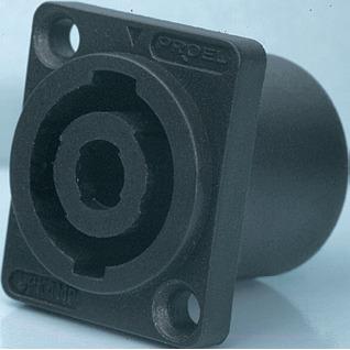 Spina da pannello 4 poli per speaker con piccola flangia a tenuta d’aria (dimensioni flangia: 25 x 30 mm.).