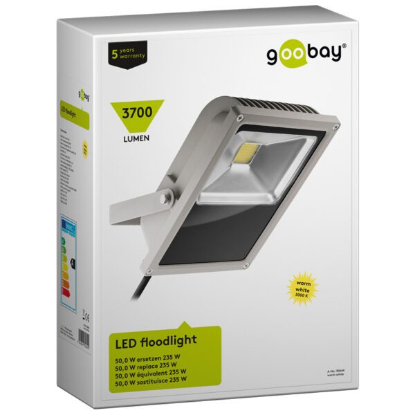 Proiettore LED da Esterno IP65 50W 3700 lm Bianco Caldo, Classe A