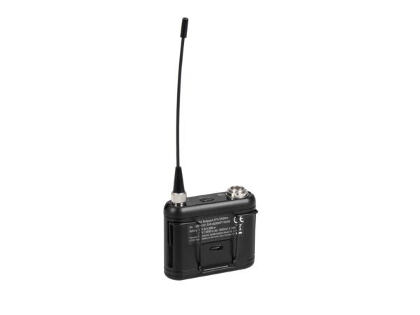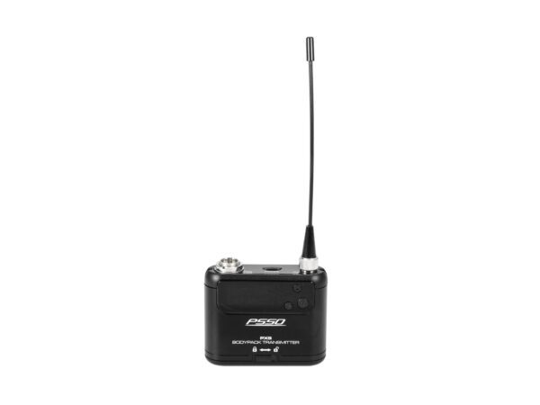 Compact bodypack transmitter with battery pack and TFT color display for PXS receivers