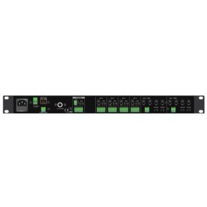 e controllo Toni Low-Mid-High – 1 Ingresso prioritario per emergenza 4xLine bilanciate con Euroblock – Uscita: 1xMono/stereo bilanciata con Euroblock – Alimentazioni: 230Vac/24Vdc Dimens.: 482x44x320 mm – Peso: 3,46kg