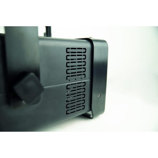 L’intensità del fumo è perfettamente regolabile da 0-100%. Non solo puoi controllare il fogger manualmente, ma anche tramite DMX o tramite telecomando con timer incluso.