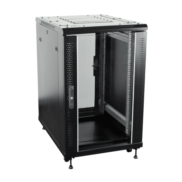 Lo Showgear RCA-FSG-18 è un armadio di rete da 19″ con serratura e un’altezza di 18 unità rack (800 mm). È dotato sia di ruote girevoli che di piedini in gomma. È possibile scegliere tra entrambe le opzioni, rendendolo adatto sia per applicazioni mobili che fisse. Questa struttura può essere aperta da ogni lato poiché ha due pannelli laterali rimovibili, una porta forata sul retro e una porta in vetro nella parte anteriore dell’unità. Questo rende facile l’installazione e il rinnovo dei rack da 19 pollici.
