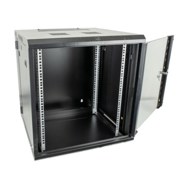 Lo Showgear RCA-WMF-12 è un rack a parete 19″ con chiusura a chiave, altezza di 12 unità e dotato di due griglie di ventilazione, adatto per installazioni fisse. Questo case rack nero da 19 pollici ha un corpo in metallo con pannelli di vetro, solo per uso interno. L’RCA-WMF-12 viene fornito con un kit di installazione da 19″, bulloni e rondelle, dado a baionetta, chiave esagonale, chiavi e viti.