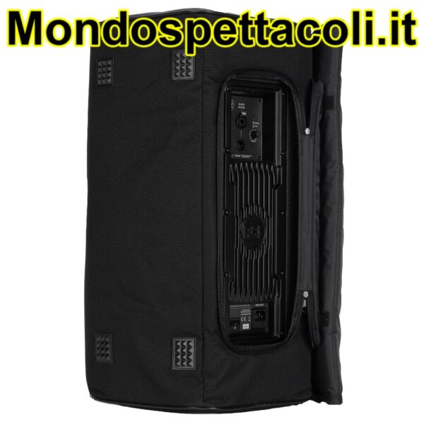È realizzata in robusto tessuto esterno in poliestere resistente alle intemperie, imbottitura in gommapiuma e aperture con cerniera e velcro. La copertura frontale può essere aperta e bloccata con velcro su un lato. Presenta diverse aperture per le maniglie, per il pannello di collegamento posteriore e per il tappo di montaggio su asta.