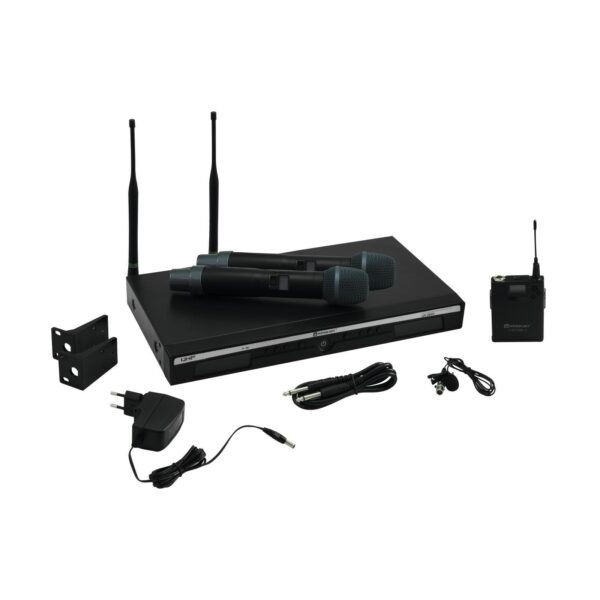 - LCD for battery status of the microphone, antenna A/B, RF reception level, AF audio level and frequency