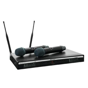 - 2 condenser hand-held microphones with ergonomic aluminum alloy housing and OLED display, applicable for touring