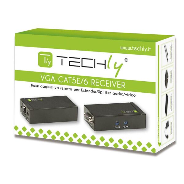 • Base aggiuntiva remota per Extender/Splitter audio/video che permette di estendere i segnali video VGA e audio, utilizzando cavi Cat5e/6 con struttura interna incrociata, fino ad una distanza massima di 300 m. • Supporta risoluzione VGA fino a 1920 x 1200• Fornisce un segnale nitido e chiaro con regolazioni del guadagno e del picco• Facile da installare – non richiede configurazioni• Ricevitore compatibile con base IDATA EX-DL252 (Extender/Splitter con 4 porte) e IDATA MSV-AU8B (Extender/Splitter con 8 porte)Caratteristiche• Ricevitore che permette di estendere il raggio di trasmissione fino a 300m• Connessioni: 1 x RJ45, 1 x HD15 F Output, 1 x Jack audio femmina 3.5’• Supporta risoluzioni standard fino a 1920 x 1200, e segnali di tipo VGA, SVGA, Multisync,• Risoluzioni supportate: 640X480, 800X600, 1024X768, 1280X720, 1280X768, 1280X960, 1280X1024, 1600X900, 1600X1200, 1920X1080, 1920X1200• Dimensioni: 100 x 65 x 25,5 mm• Peso: 385 g• Alimentatore incluso: 5V 2A 5WContenuto della confezione• Base remota per Splitter/Extender VGA Cat5e/6 • Alimentatore 5V 2A• Manuale d’istruzione