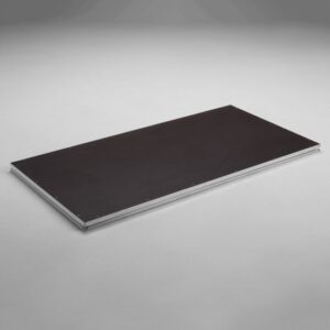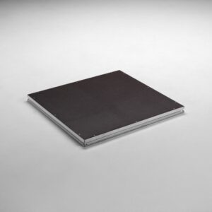 Ripiano 75 x 75 cm in multi-strato di betulla resinato al quale è applicato un profilo in alluminio di spessore 55mm.