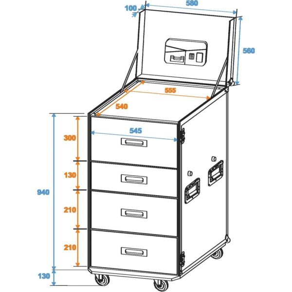 - Incl. 18 mm wheel board with 4 castors, 2 of which have brakes