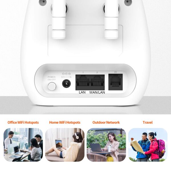 offre anche servizi voce su VoLTE o CSFB. Offre velocità Wireless fino a 300 Mbps, la velocità wireless ideale per godersi lo streaming di video HD senza interruzioni, scaricare film o file rapidamente e uplink di foto e file senza interruzioni. Questo router è perfetto per i luoghi in cui le velocità 4G LTE sono più veloci di quelle a banda larga o ADSL. Fornisce costantemente un servizio Wi-Fi ad alta velocità e un servizio vocale. La crittografia wireless WPA / WPA2 mantiene la tua rete wireless sicura e la crittografia sicura del traffico ti consente di condividere in modo sicuro le tue connessioni 4G LTE o 3G senza preoccuparti di utenti non autorizzati che accedono alla tua rete.