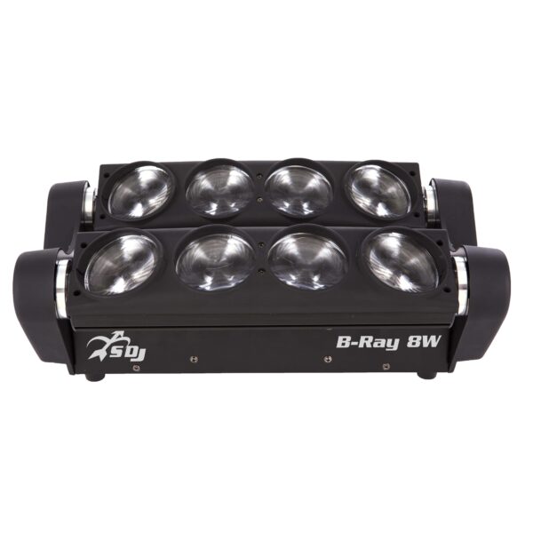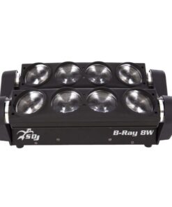 L’intrattenimento, oggi, può scegliere tra una vasta gamma d’effettistica beam di ultima generazione. L’innovativa linea B-Ray offre una doppia serie di prodotti in linea con le richieste degli addetti ai lavori. B-Ray 8 è una doppia barra parallela con ben 8 uscite beam con un angolo di proiezione da 4°, alimentate da potenti sorgenti led da 8W bianche. Il doppio movimento tilt a 145° di ogni barra è controllabile singolarmente e genera effetti di movimento incredibili con fasci luminosi a lunga gittata che, se controllati singolarmente, offrono numerose possibilità creative idonee al campo d’utilizzo. Il software interno è stato realizzato garantendo una delle interfacce più intuitive del mercato, dando all’utilizzatore numerose possibilità di personalizzazioni, richiamabili direttamente dal pannello di controllo o proposte nella modalità DMX.