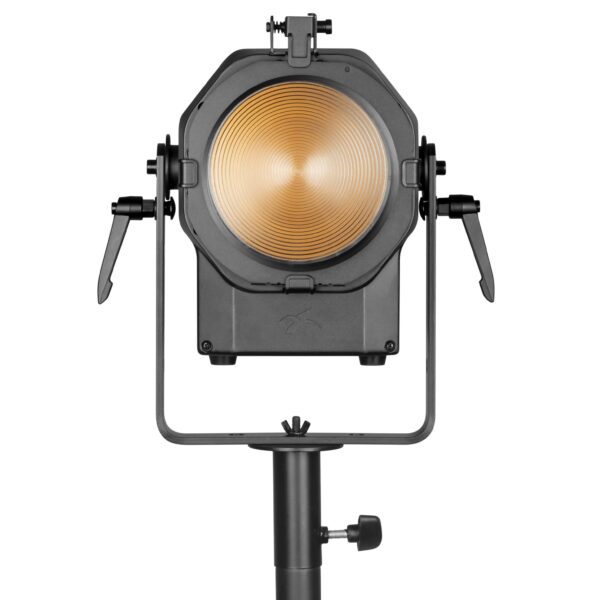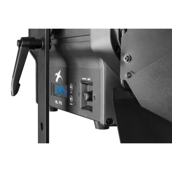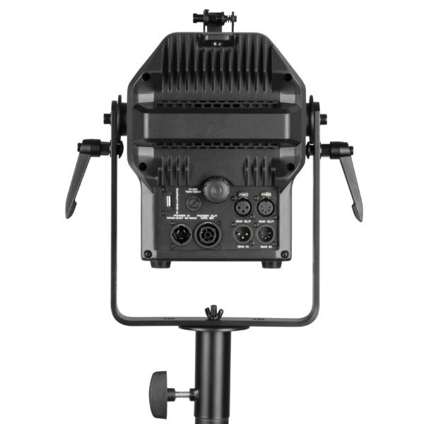 | Struttura e corpo mobile | Struttura in alluminio di colore nero Nuova lente Fresnel in PMMA diametro 150 mm Display LCD grafico di colore blu Sistema di ancoraggio con staffa singola Bandiera ruotabile inclusa Connessione di segnale DMX ingresso e uscita 3/5 poli Connessione USB per aggiornamento software e controllo wireless (codice d’ordine SG WECONUSB) Grado di protezione IP20 Raffreddamento a ventilazione forzata controllata elettronicamente “low noise” 3 modalità ventole selezionabili Noise levels @1m: Fan AUTO: 39.0dB(A), Fan HIGH: 48dB(A), Fan LOW: 38dB(A) Staffa per controllo da palo per Pan / Tilt (venduta separatamente – codice d’ordine SG HLF2PLBR) |