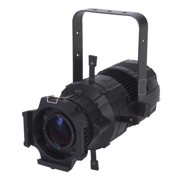 | Struttura e corpo mobile | Struttura in plastica ad alta resistenza di colore nero Display LED di colore rosso Sistema di ancoraggio con staffa singola Portagelatina incluso Portagobo incluso Iris non incluso (venduto separatamente) Connessione di segnale DMX ingresso e uscita 3 poli tramite box esterno USB Grado di protezione IP20 Reffreddamento a ventilazione forzata controllata “low noise” |
