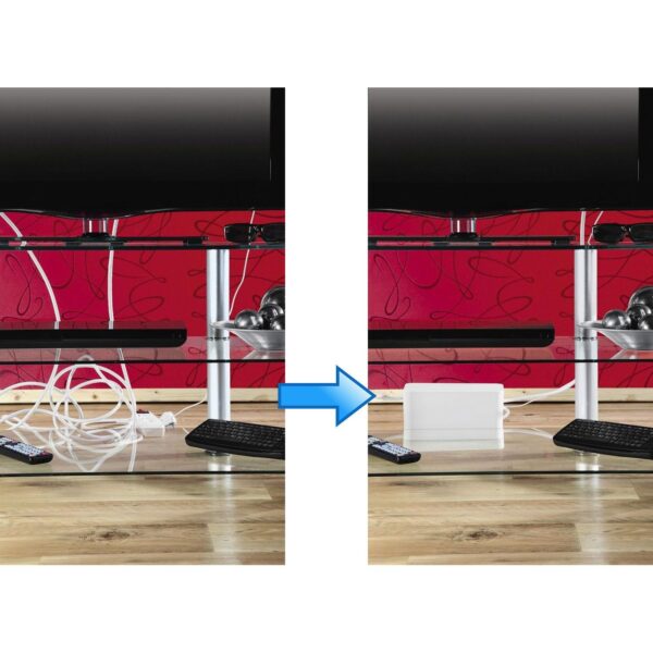 • Robusta scatola organizzacavi, ideale per nascondere cavi aggrovigliati e una multipresa• Provvista di slot per il passaggio dei cavi su ambo i lati• Mantiene lo spazio di lavoro organizzato e in ordine• Conserva cavi, ciabatta e alimentatori al riparo dalla polvere • Dotata di coperchio di chiusura pensato come supporto per i dispositivi mobili durante la ricarica• Materiale: plastica • Colore: biancoDimensioni• Larghezza: 407 mm• Profondità: 157 mm • Altezza: 133,5 mmContenuto della confezione• Contenitore per gestione cavi, bianco