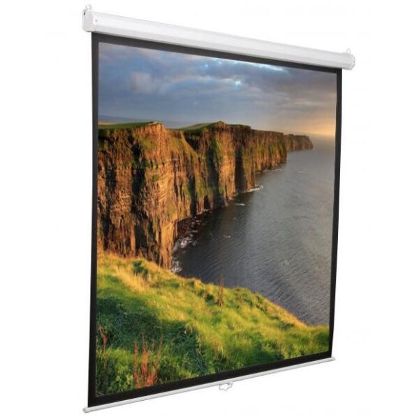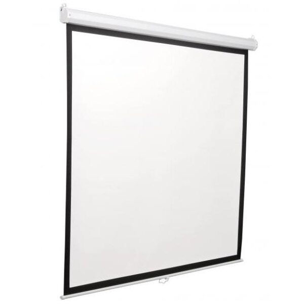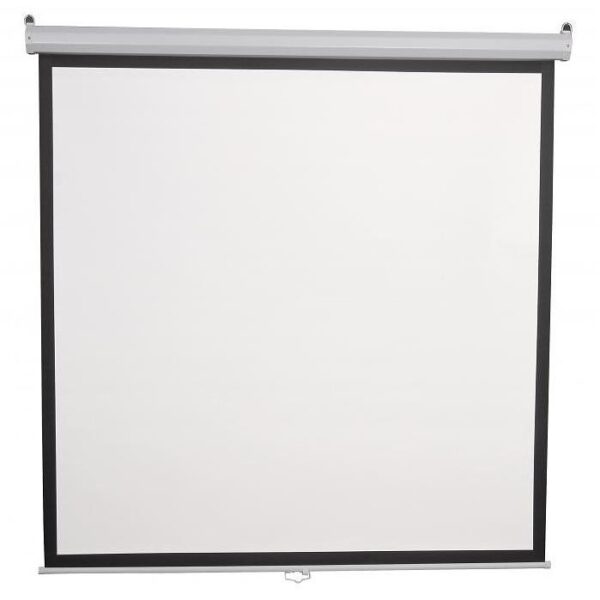 • Schermo da 118′ per videoproiettori• Design compatto tubolare in acciao con bordi in plastica • Provvisto di due ganci ad anello per un semplice fissaggio a parete o a soffitto• La discesa del telo può essere regolata a piacimento, permettendo di impostare il formato che si desidera• Regolazione variabile per l’impiego con formati di proiezione 1:1, 4:3 e 16:9• Meccanismo di autoavvolgimento del rullo con freno automatico• I bordi perimetrali di colore nero favoriscono il contenimento ottimale delle immagini ed un maggiore contrasto• Il retro nero oscurante evita che la luce proiettata si disperda e che eventuale luce proveniente dal lato posteriore sia visibile attraverso il telo• Ideale per l’home theater e proiezioni in sale conferenzeSpecifiche tecniche• Dimensioni della tela: 118′ (213 x 213 cm)• Formato immagine supportato: 16:9, 4:3 e 1:1• Bordo nero da 30 cm in caso di proiezioni in 16:9, 5 cm con proiezioni 4:3 e 1:1• Cornice perimetrale fissa da 4cm di altezza• Colore schermo: bianco Dimensioni• Larghezza: 213 cm• Altezza: 213 cmContenuto della confezione• Schermo di proiezione da 118’• Manuale utente
