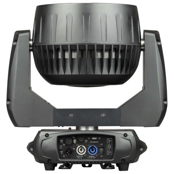 | Struttura e corpo mobile | Struttura in metallo e coperture in plastica pressofusa ad alta resistenza di colore nero Display LCD grafico a colori Escursione PAN 360°/540°/630° Escursione TILT 90°/180°/270° Sistema di ancoraggio con doppia staffa omega a fissaggio rapido (1/4 di giro) Riposizionamento automatico di Pan&Tilt in seguito a spostamenti accidentali Connessione segnale DMX XLR IN/OUT 3-poli Porta USB per ricevitore wireless DMX opzionale (codice prodotto: SG WECONUSB) Grado di protezione IP 20 Raffreddamento a ventilazione forzata controllata elettronicamente |