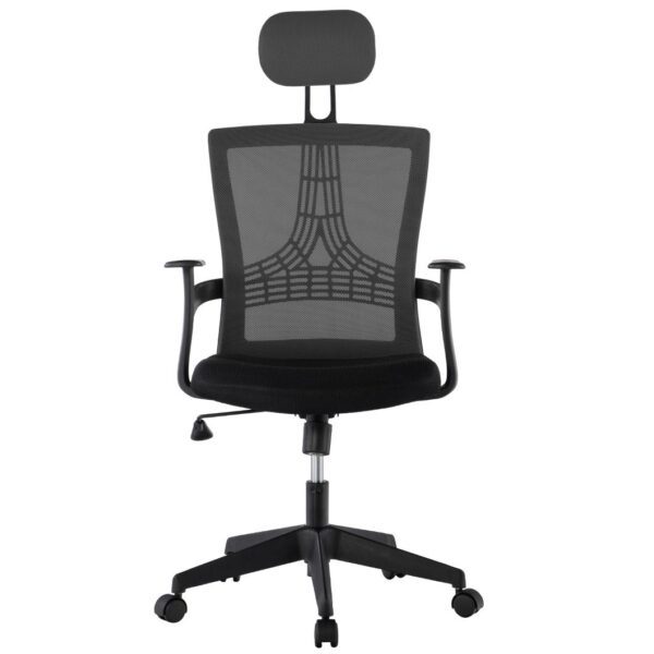 • Elegante sedia per ufficio, ideale per l’ufficio e la casa• Provvista di seduta imbottita e schienale alto in reteCaratteristiche:• Con braccioli• Seduta in tessuto di colore nero• Regolazione pneumatica dell’altezza• Base in nylon con ruote piroettanti in PUDimensioni:• Altezza: 1210 mm• Larghezza: 630 mm• Profondità: 590 mm