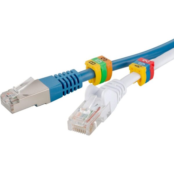 • Sistema di identificazione di fili e cavi veloce ed economico• Permette una facile organizzazione dei cablaggi sia in fase di montaggio che in quella di manutenzione• Grazie alla struttura a clip permette la siglatura di cavi già cablati evitando di scollegare i cavi stessi• Montaggio rapido che non richiede l’ausilio di alcun strumento• Diversi anelli singoli possono essere bloccati insieme (anti-rotazione)• Contrassegnati con lettere A B C• Diametro cavo supportato: 1.5 mm – 2.5 mm• Confezione da 90 lettere (3 strisce da 30 lettere/cad.)