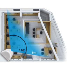 Sfruttando la tecnologia a infrarossi proprietaria e l’algoritmo sofisticato, il PIR-910 rileva con precisione i movimenti del corpo umano e riduce efficacemente le interferenze e i falsi allarmi con la compensazione automatica di temperatura. Facile da installare, si adatta a qualsiasi ambiente ed è affidabile, può anche inviare avvisi di batteria scarica quando viene utilizzato con un sistema di allarme GSM. Il rilevatore non considera la presenza di animali domestici di piccola taglia fino a 25 kg.Caratteristiche: • Sensore di Movimento PIR Bidirezionale immune Pet Modello: PIR-910• Comunicazione bidirezionale con il pannello di controllo• Alimentazione: DC 3V (AA 1.5V LR6 x 2) • Consumo in Modalità Attesa: ≤ 90 μA• Consumo in Modalità Allarme: ≤ 9.5 mA• Campo di Copertura: 8m / 110º• Distanza di Trasmissione: ≤ 100 m (area aperta)• Immune agli animali di peso ≤ 25kgs• Frequenza di Trasmissione: 433 MHz (± 75 KHz)• Materiale Pannello: Plastica ABS• Condizioni Operative:- Temperatura: -10ºC ~ 55ºC- Umidità: ≤ 80% (senza condensa)• Dimensioni (L x A x P):- Rilevatore: 108 x 52 x 36.8mm- Snodo: 52 x 30 x 26.5 mmContenuto della confezione• Sensore di Movimento PIR Modello: PIR-910• Batterie: 1,5V AA x 2