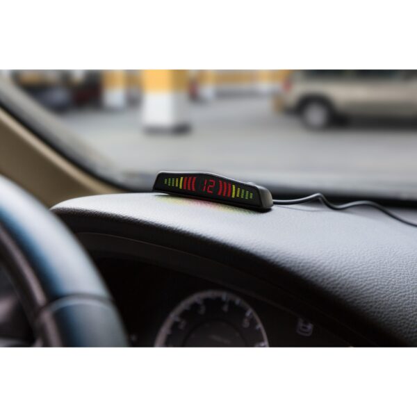 • Adatto per la maggior parte dei veicoli come assistenza per retromarcia• 4 sensori a ultrasuoni (40kHz)• Display digitale sul cruscotto• Avviso ottico e acustico crescente (> 80dB)• Campo di misura da 0,3m–2,0m in passi da 0,1m• Alimentazione CC 12V dei sensori tramite il collegamento alla luce di retromarcia• Classe di protezione IP68 dei sensori (antipolvere e impermeabile)• Set completo di installazioneSpecifiche tecniche• Angolo di rilevamento: orizzontale e verticale 90°±15°• Distanza di allarme: sensori posteriori 0,3m~1,5m• Distanza sul display: sensori posteriori 0,3m~2,0m• Tensione di esercizio: CC 12V / Intervallo: CC 10V~16V• Potenza operativa: 6W massima• Temperatura d’esercizio: –40°C a 80°CPeso e Dimensioni• Peso/Dimensioni scatola di controllo: 48g / (Lu) 8,3 x (La) 5,35 x (A) 1,9cm• Peso/Dimensioni display a LED: 81g / (Lu) 7,55 x (La) 2,85 x (A) 1,2 cm / (Lu) cavo 4,94m• Peso/Dimensioni un sensore: Peso 14,5g / (Lu) 1,16mContenuto della confezione• Assistenza per retromarcia TX-109• 4x Sensori posteriori• 1x Display• Cavo di alimentazione• Sega frontale a corona (22 mm)• 1x Adesivo 3M• Manuale di istruzione