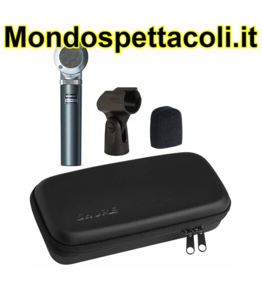 Accessori inclusi: preamplificatore integrato, supporto universale A57F, antivento e custodia morbida.