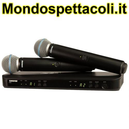 Kit radiomicrofono analogico per voce. Composto da un due trasmettitori a mano BLX2/Beta58 e un ricevitore doppio canale BLX88. Banda M17 (662 – 686 MHz). Accessori inclusi: alimentatore PS23E, n°2 supporti per asta e n° 2 adattatori filettati 5/8″ – 3/8″.