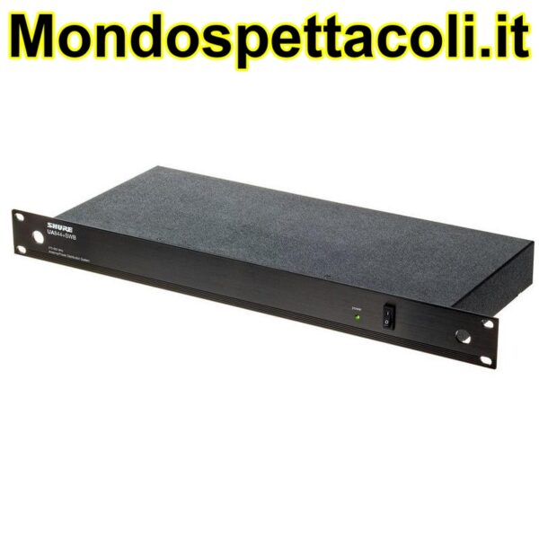 Distributore attivo di antenna per 5 ricevitori. Fino a 5 UA844+SWBE per gestione di 25 ricevitori da singola coppia di antenne. Frequenze portante supportate: 470-952 MHz. Impedenza tipica: 50 ohm. Guadagno RF: da -1 a 1 dB. Alimentazione:14-18 Vdc replicata su 5 uscite (corrente max 2.5A). Tensione uscita antenna: 15 Vdc. Dimensioni: 44.5 mm H x 482.6 mm W x 171.5 mm D Peso: 1.62 Kg. Accessori inclusi: accessori montaggio frontale antenne, accessori montaggio rack, 4 cavi alimentazione per ricevitori con lock, 4 cavi alimentazione per ricevitori senza lock, cavi antenna, alimentatore esterno PS45.