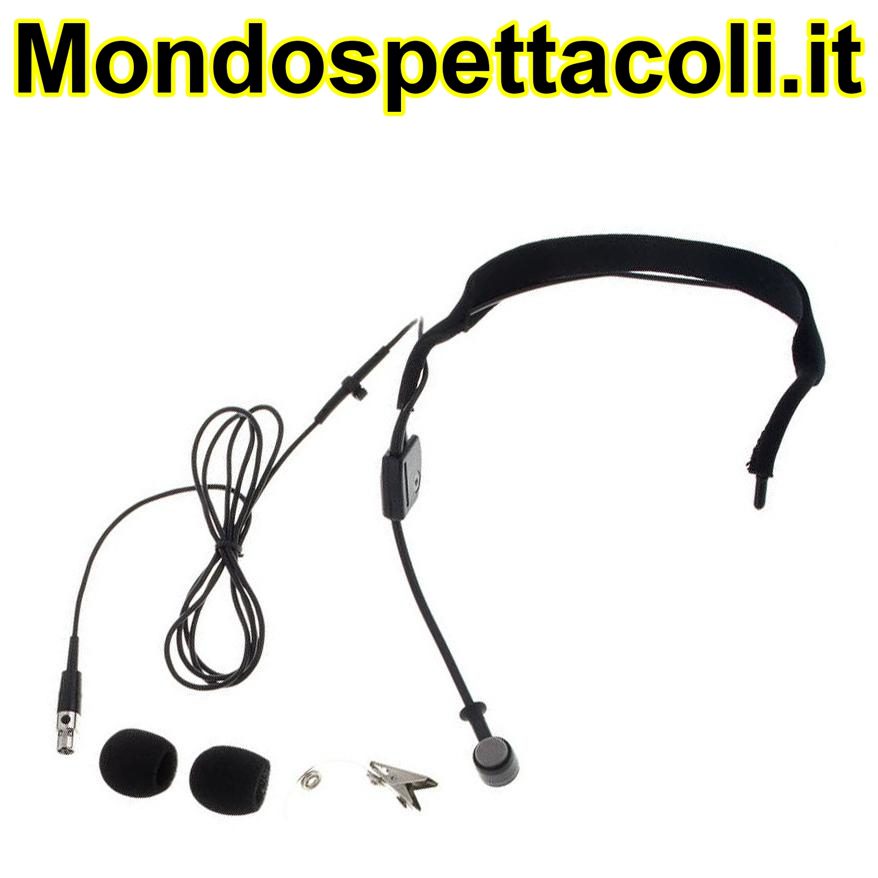 Earset per utilizzo con body pack delle serie wireless. Capsula: Dinamica; Polare: Cardioide; Risposta: 50-15,000 Hz; Sens.: -67 dBV/Pa* a 1kHz *1 Pa=94 dB SPL; Impedenza: 150 Ohm; Peso: 63 gr. (90 gr. connettore). Cavo 1.2m a due conduttori schermato con connettore TA4F. Accessori inclusi: spugne antivento, e clip per abiti.