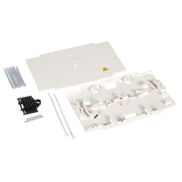 • Set completo per la gestione di cablaggi in fibra ottica con connessioni a fusione • Indicato per l’assemblaggio all’interno di cassette di distribuzione, cassetti ottici e box ottici a muro• Contiene 1 vassoio portagiunti che permette di contenere fino a 2 supporti per connessioni a fusione• Include coperchio con etichettatura con simbolo ‘attenzione laser’• Con 1 supporto a pettine per 6 fibre e 6 protezioni per giunzioni a fusione• Nella fornitura sono incluse 2 fascette e 1 tubo a spirale• Dimensioni (LxAxP): 92 x 155 x 8 mmContenuto della confezione• 1 vassoio portagiunti per 2 supporti per connessioni a fusione• 1 coperchio • 1 supporto a pettine per 6 fibre • 6 protezioni per giunzioni a fusione• 2 fascette• 1 tubo a spirale