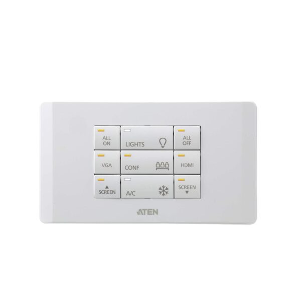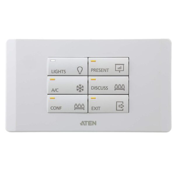 VK112EU è un tastierino a 12 pulsanti completamente personalizzabile studiato per l’uso con il Sistema di controllo ATEN. Il tastierino offre un’interfaccia per il controllo dei dispositivi in un ambiente da un pannello standard montato a parete. Creato pensando alla flessibilità, il tastierino può essere disposto in 125 combinazioni da 6 a 12 pulsanti che si agganciano tra di loro in modo semplice come i Lego. Eseguendo il collegamento alla Scatola di controllo VK2100/VK1100 tramite LAN, gli utenti potranno usare senza problemi il software VK6000 per configurare il controllo desiderato di qualsiasi dispositivo collegato, direttamente dal tastierino. Con i pulsanti pronti all’uso, è possibile controllare in modo immediato e intelligente delle apparecchiature dal tastierino o dai tastierini che possono gestire qualsiasi dispositivo nella stanza. VK112EU è una soluzione accessibile, perfetta come interfaccia principale in piccole sale riunione, o come dispositivo secondario nelle classi e nei centri conferenze.Caratteristiche• Tastierino, offre il collegamento fisico al sistema di controllo ATEN• Completamente personalizzabile con 125 combinazioni di layout, da 6 a 12 pulsanti• Indicatori LED di sistema per verificare rapidamente lo stato di connessione• LED pulsanti a due colori per indicare in modo chiaro e per la visibilità in ambienti scuri• Associazione ID semplice con la scatola di controllo per la comunicazione Ethernet• Collegamento di fino a 8 tastierini a una singola Scatola di controllo per la scalabilità futura• Modalità versatili che supportano l’impostazione flessibile del comportamento di ciascun pulsante• Interfaccia grafica web intuitiva per rendere la configurazione del tastierino più semplice• Alimentatori ridondanti con PoE (Power over Ethernet) e alimentazione CC• Servizio di incisione del pulsanteSpecifiche• Interfacce: – Ethernet: 1 x RJ-45 Femmina, 10/100Base-T – Protocollo supportato: ICMP, TCP/IP, DHCP, HTTPS- DHCP attivato. Le seguenti impostazioni IP predefinite saranno utilizzate nel caso non sia assegnato un IP entro 30 secondi: IP: 192.168.0.60 / Subnet mask: 255.255.255.0• Layout tastierino: Da 6 a 12 pulsanti personalizzabili in 125 layout tastierino• Interruttori:- ID controller: 1 x Interruttore 16 segmenti• Tasto di ripristino: 1 x Pulsante semi-incassato• Consumo (DC5V) :1.25W:6BTU• Ambiente- Temperatura di esercizio: 0 – 50°C- Temperatura di conservazione: –20 – 60°C- Umidità: 0 – 80% di umidità relativa, senza condensaProprietà fisiche• Struttura: Plastica• Peso: 0.14 kg • Dimensioni (L x P x A): 8.32 x 14.76 x 3.87 cm • Dimensioni coperchio anteriore (L x L x A): 8.62 x 15.12 x 0.92 cm Contenuto della confezione• 1 x tastierino VK112EU• 18 x pulsanti• 1 x blocco terminale• 1 x pannello• 1 x istruzioni per l’utente