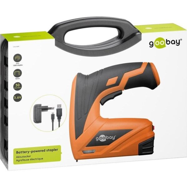 • Cucitrice per una graffatura rapida e semplice• Potente, consente di sparare fino a 40 punti al minuto• Manico ergonomico con superficie in gomma per una presa sicura• Grazie al blocco di sicurezza permette il rilascio della graffetta solo in posizione operativa • Con sistema di caricamento posteriore per una ricarica più rapida• Fornito in una pratica valigetta che include 1000 punti metallici e caricabatterie (3,6 V 1300 mAh Li-ion) Specifiche tecniche• Batteria: agli ioni di litio (Li-Ion)• Tempo di ricarica: 3,5 ore massimo• Tensione: 3,6 V• Capacità: 1300 mAh massimo• Capacità: 1,3 Ah massimo• Con connessione Micro USB per ricarica (cavo Micro USB a USB tipo A, 1 m)• Profondità massima della graffetta: 12 mm (tipo 53)• Dimensioni: 41,0 x 52,5 x 34,8 mmContenuto della confezione • 1 x Sparapunti a batteria • 1 x Caricabatteria• 1000 x Punti metallici • 1 x Valigetta