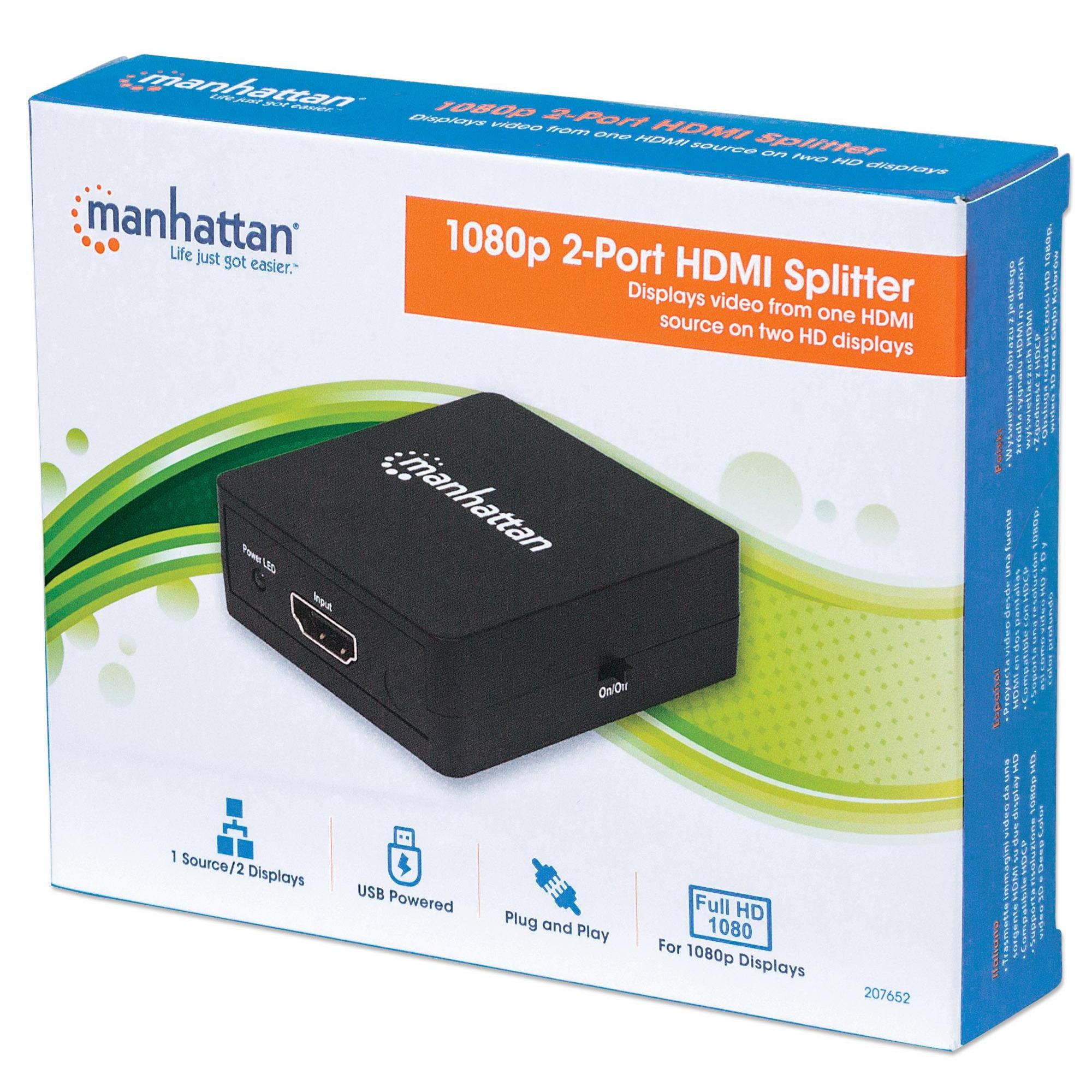 • Trasmette immagini video da una sorgente HDMI su due display HD• Trasmette un segnale forte e chiaro da lettori Blu-ray, set-top box, ricevitori satellitari e altro• Possibilità di mettere in cascata fino a tre livelli per espandere la distribuzione del segnale a più schermi• Compatibile HDCP• Supporta LPCM, DTS @ Digital, DTS-HD Master Audio e Dolby TrueHD audio• Supporta risoluzione 1080p HD, video 3D e Deep Color• Supporta amplificatore video di banda fino a 2,25 Gbps• Plug-and-play; non richiede configurazione o remoto• Contatti doratiStandard e Certificazioni• HDCP 1.0 / 1.1 / 1.2• DVI 1.0• CE• FCC• RoHS2Informazioni generali• Distanza sorgente-splitter: fino a 15 m• Distanza splitter-monitor: fino a 15 m• Alimentazione: 5 W; cavo USB, 0.7 mConnessioni• Un HDMI femmina, 19-pin (entrata)• Due HDMI femmina, 19-pin (uscita)• Un USB Mini-B femmina, 5-pin (entrata)Segnale entrata/uscita• Ingresso segnale video: 0.5 – 1.0 V p-p• Segnale DDC in entrata: 5V p-p (TTL)• Massimo single-link range: 2.25 Gbps, 1920×1200, 1080p • Conforme HDMI 1.3b, HDCP 1.0 / 1.1 / 1.2 e DVI 1.0• Frequenza: 2.25 Gbps / 225 MHzRisoluzioni Video• DTV/HDTV: 480i/480p/576i/576p/720p/1080i/1080pInformazioni fisiche• Indicatori LED di alimentazione e di connessione• Interruttore • Dimensioni: 60 x 54 x 20 mm• Peso: 0.04 g• Alloggiamento: plasticaCaratteristiche ambientali• Temperatura operativa: 0 – 70°C• Temperatura di stoccaggio: -10 – 80°C• Umidità operativa (senza condensa): 10 – 85%• Umidità di stoccaggio (senza condensa): 5 – 90%Contenuto della confezione• Splitter HDMI 2 porte 1080p• Cavo di alimentazione USB• Manuale utente