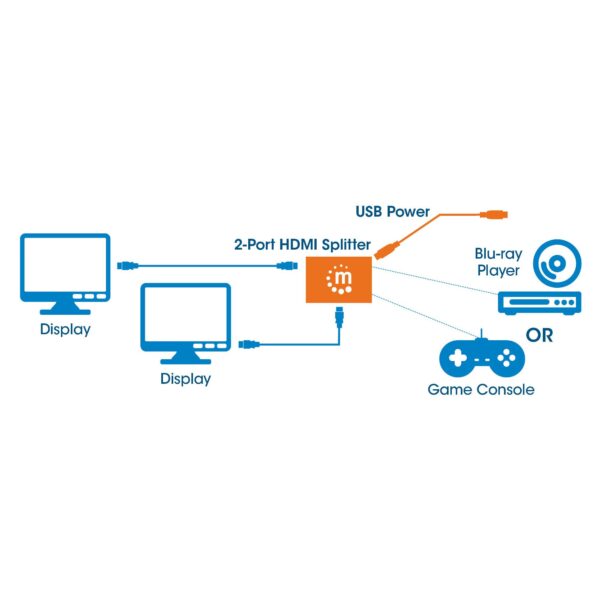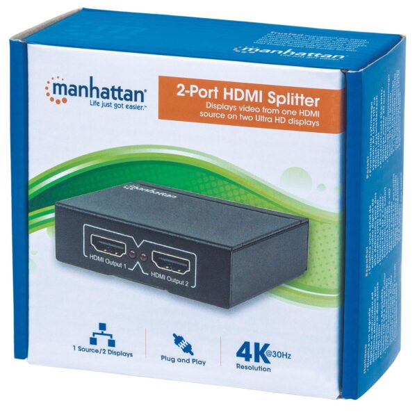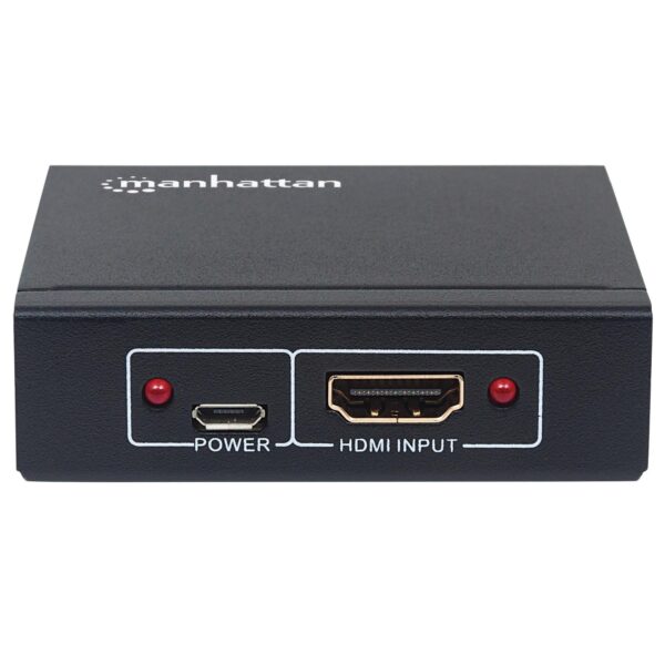 • Duplica un segnale digitale audio/video ad altissima definizione per un massimo di due uscite HDMI UHD• Risoluzione 4K@30Hz, video full 3D e Deep Color• Si possono collegare in cascata fino a 3 splitter per supportare 4 display 4K• Supporta amplificatore di larghezza di banda video fino a 340MHz, 3.4Gbps per canale (10.2Gbps totali) per display 4Kx2K• Supporta Master Audio DTS-HD compresso, 7.1 suono surround, Dolby TrueHD e audio non compresso LPCM 8 canali• Supporta Deep Color 48-bit (12-bits per canale) e xvYCC (x.vColor)• Supporta LPCM, DTS @ Digital, DTS-HD Master Audio e Dolby TrueHD audio• Compatibile HDCP• Alimentazione USB, installazione Plug and Play; non richiede impostazioni speciali o remote• Si possono collegare in cascata fino a 3 splitter per supportare 4 display 4K• Contatti dorati per una lunga durata nel tempo• Funziona con console di gioco Playstation e Xbox, lettori Blu-ray, set-top box, ricevitori satellitari e altroStandard e certificazioni• HDCP 1.3• DVI 1.0• CTS 1.4a• CE• FCC• RoHS2Connessioni• 1 HDMI femmina (entrata)• 2 HDMI femmina (uscita)• Alimentazione 5V/1A DC MicroUsb femmina (entrata)Segnale entrata/uscita• Ingresso segnale video: 0.5 – 1.0 V p-p• Segnale DDC in entrata: 5V p-p (TTL)• Portata massima single-link: 10.2 Gbps, risoluzione 4096×2160/24Hz• Uscita video: HDCP 1.3, DVI 1.0• Frequenza: 2.97 Gbps / 225 MHzRisoluzioni Video• VGA: 640 x 480, 800 x 600, 1024 x 768, 1920 x 1200• DTV/HDTV: 480i/480p/576i/576p/720p/1080i/1080p/4K@30HzInformazioni fisiche• Indicatori LED: alimentazione e connessione porta• Dimensioni: 60 x 70 x 20 mm• Cavo di alimentazione USB 5V DC/1A 1m• Peso: 125 g• Alloggiamento in metalloCaratteristiche ambientali• Temperatura operativa: 0 ~ 40°C• Temperatura di stoccaggio: -20 ~ 60°C• Umidità: 0 ~ 96%Contenuto della confezione• Splitter HDMI• Cavo USB/MicroUSB per alimentazione da 1 metro• Manuale utente