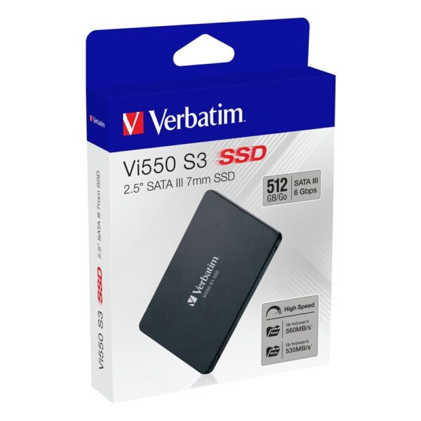 Le unità allo stato solido da 7 mm SATA III da 2,5” di Verbatim sono in grado di migliorare le prestazioni del vostro sistema. Tramite le ultime tecnologie 3D NAND, che offrono il modo ideale per eseguire un aggiornamento sia da disco rigido che da un SSD meno recente. Il Vi550 è dotato di un controller di livello superiore per una maggiore affidabilità, maggiori capacità e velocità di lettura/scrittura.