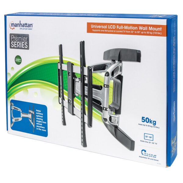 • Staffa a Muro in Alluminio per TV LCD Full-Motion• Supporta in modo sicuro TV a schermo piatto o curvo• Visualizzazione ottimale con inclinazione da -15° a 5°; rotazione ± 60° e livello di regolazione ± 2,5°• Di alta qualità, costruzione in leggero alluminio• Si installa facilmente, ideale per la casa, l’ufficio e le applicazioni commerciali• Compatibile VESA: 200×200, 300×300, 400×200, 400X400• Supporta un monitor a schermo piatto o curvo da 32′ a 55′, fino a 50 kg• Compatibile con attacco VESA massimo 400×400• Capacità: fino a 50 kg• Progettato per monitor a schermo piatto e curvo• Design moderno• Profilo di montaggio: 53-518 mmContenuto della confezione• Staffa a Muro in Alluminio per TV LCD Full-Motion• Hardware e istruzioni per l’installazione