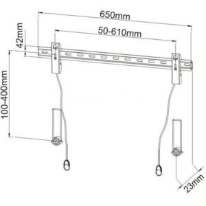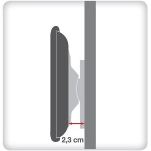 • Staffa dal design sottile, consente una distanza di soli 23 mm dal muro, il miglior profilo sia per l’installazione che per il risultato gradevole• Installazione veloce grazie ad un sistema intelligente di bloccaggio e al supporto pieghevole che facilita il collegamento dei cavi• Il sistema integrato di regolazione del livello consente di regolare la posizione del televisore anche se la piastra a muro è stata installata leggermente fuori livelloCaratteristiche• Staffa slim universale per TV sottili 40-65’• Supporta VESA fino a 600×400 mm • Massimo peso supportato: 60 kg• Dotata di bolla di livelloSpecifiche• Distanza dal muro: 23 mm• Larghezza: 650 mm• Con bolla di livello• Colore: neroContenuto della confezione• Supporto TV da muro• Materiale di montaggio• Manuale d’istruzioni