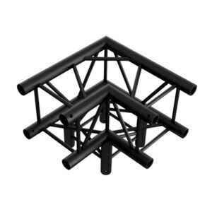 Ogni traliccio (lunghezza o angolare) viene sempre fornito con un set di connessione completo (spigot, spine e molle a R) per un lato. Il traliccio nero che offriamo è verniciato a polvere con colore RAL9005, nero.