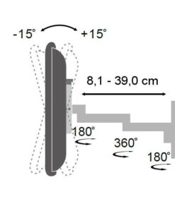 • Staffa universale per fissare una TV LED /LCD al muro; facile e veloce da installare, è ideale per la casa, l’ufficio e le applicazioni commercialiCaratteristiche• Staffa adatta per TV LED LCD 13-30’• Supporta VESA 75×75 e 100×100 mm • Massimo peso supportato: 15 kg• Braccio a 3 snodi con massima estensione di 390 mmSpecifiche• Inclinazione +/-15°• Orientamento orizzontale: 180°• Distanza minima dal muro: 81 mm• Distanza massima dal muro: 390 mm• Dimensioni: 116 x 152 x (81-390) mm, 1.0kg• Colore: neroLa confezione include• Supporto a muro per TV LED LCD• Accessori di fissaggio (viti, tasselli…) e istruzioni per l’installazione